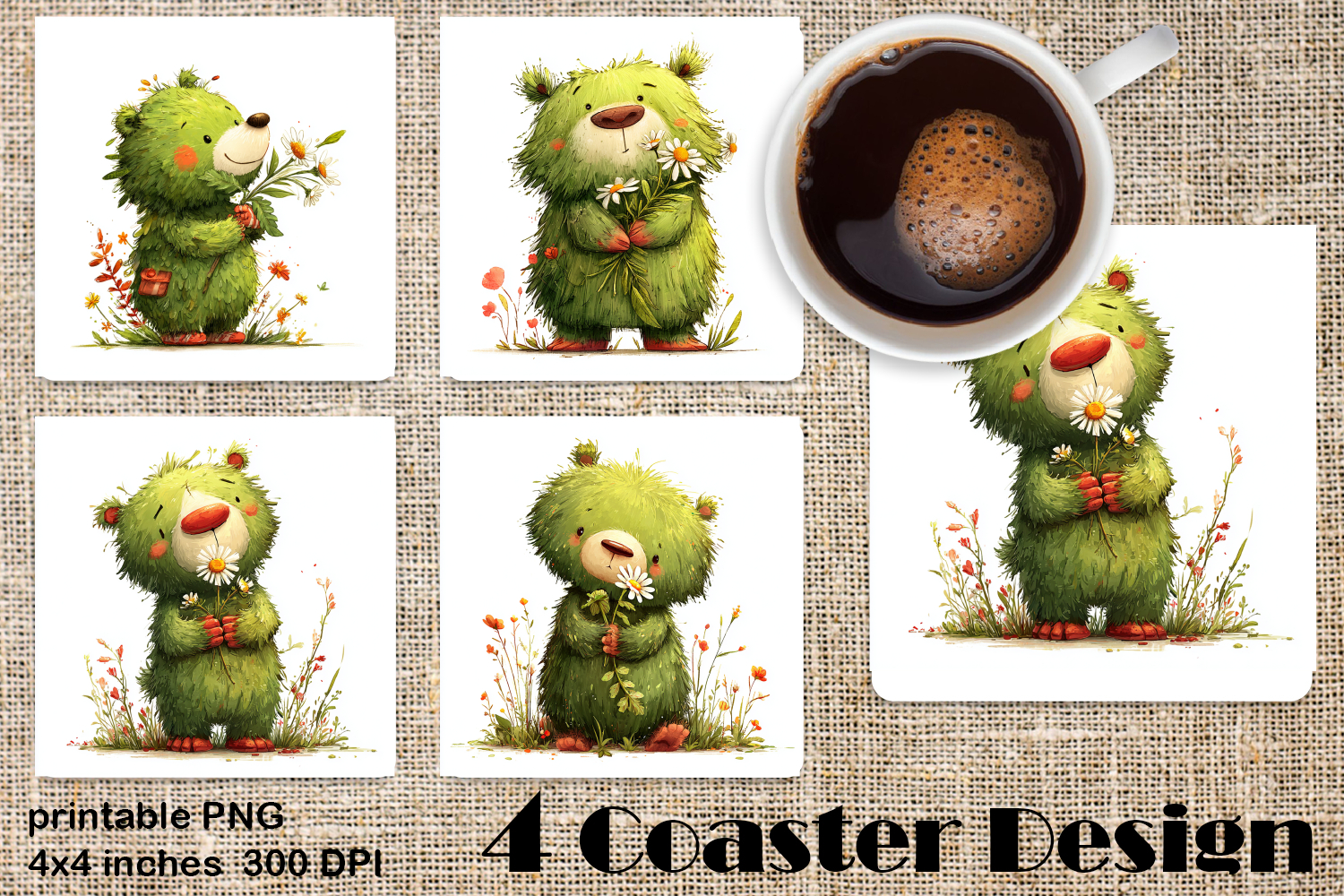 Coasters product contains 4 designs PNG.