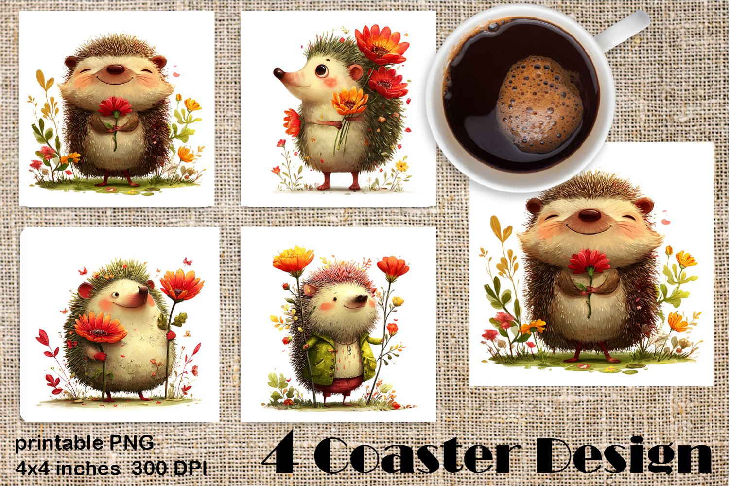 Coasters product contains 4 designs PNG.