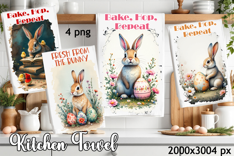 Easter Bunny Kitchen Towel Sublimation Design example image 1