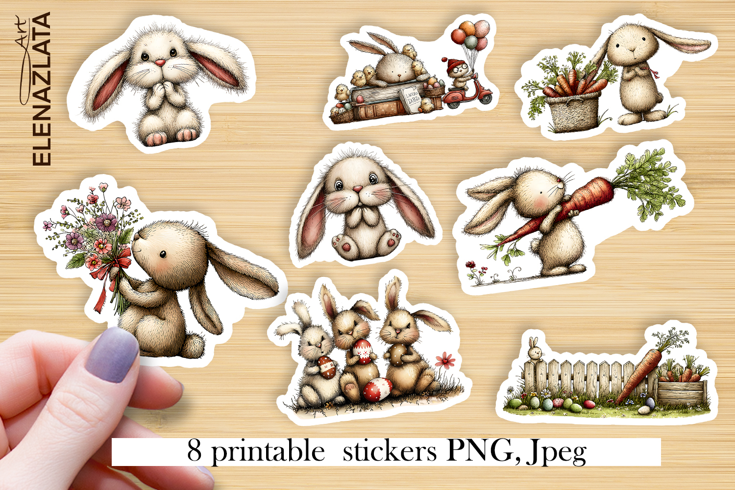 Similar Design Products to Stickers with cute bunny. Children's stickers. Easter