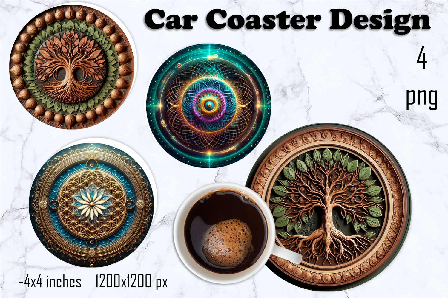 Car Coaster 3d Mandala Coaster Sublimation Coasters Square Square Coaster Sublimation Tea Cup Square Coaster 3d Mandala Coaster 3d Mandala Flowers Round 3d Mandala Decor Summer 3d Mandala