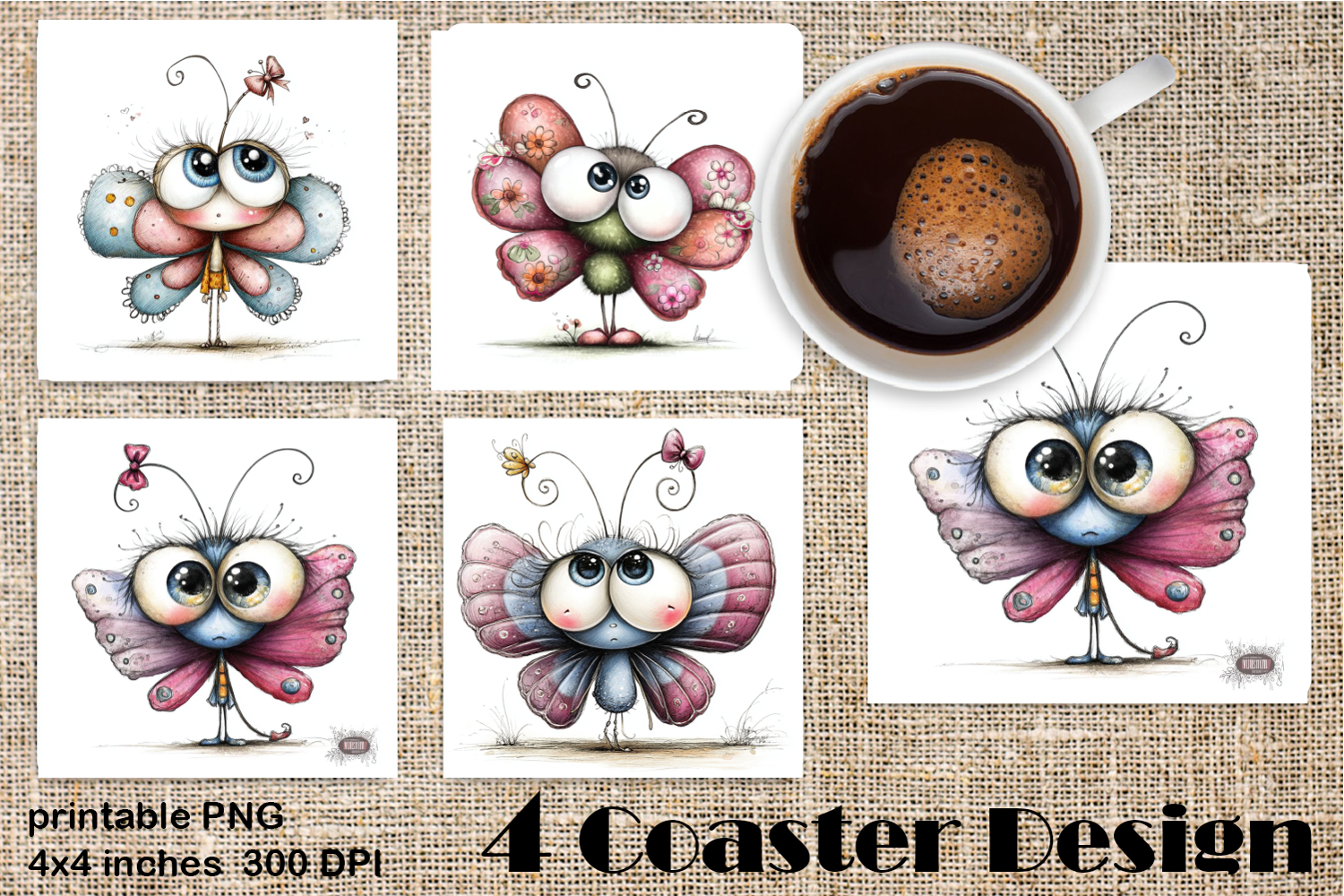 Summer flowers Coaster Design |butterfly Floral Sublima example image 1