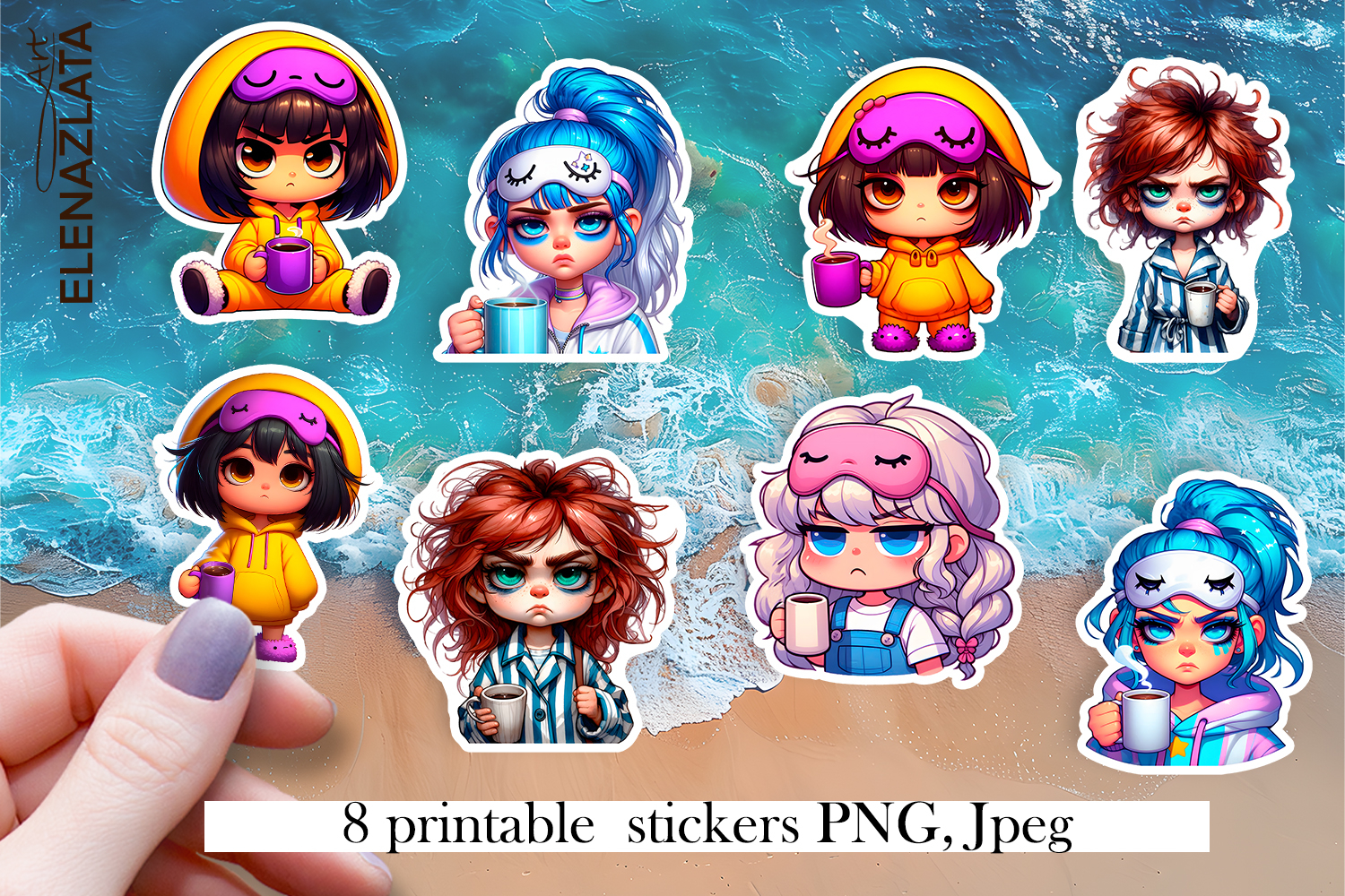 8 sticker sheets in PNG format, 8.5' x 11' letter size ( transparent background, 300 dpi);