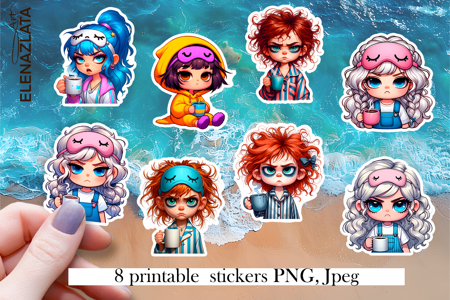 8 sticker sheets in PNG format, 8.5' x 11' letter size ( transparent background, 300 dpi);