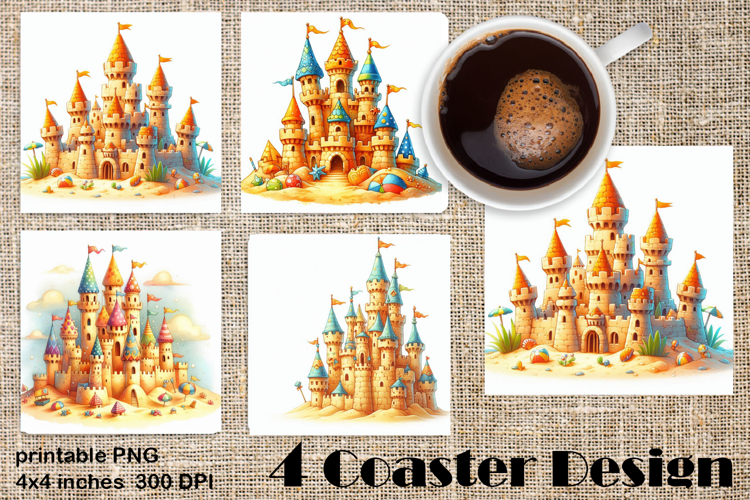 Similar Design Products to Sea sand castle Square Coaster Sublimation PNG | Summer