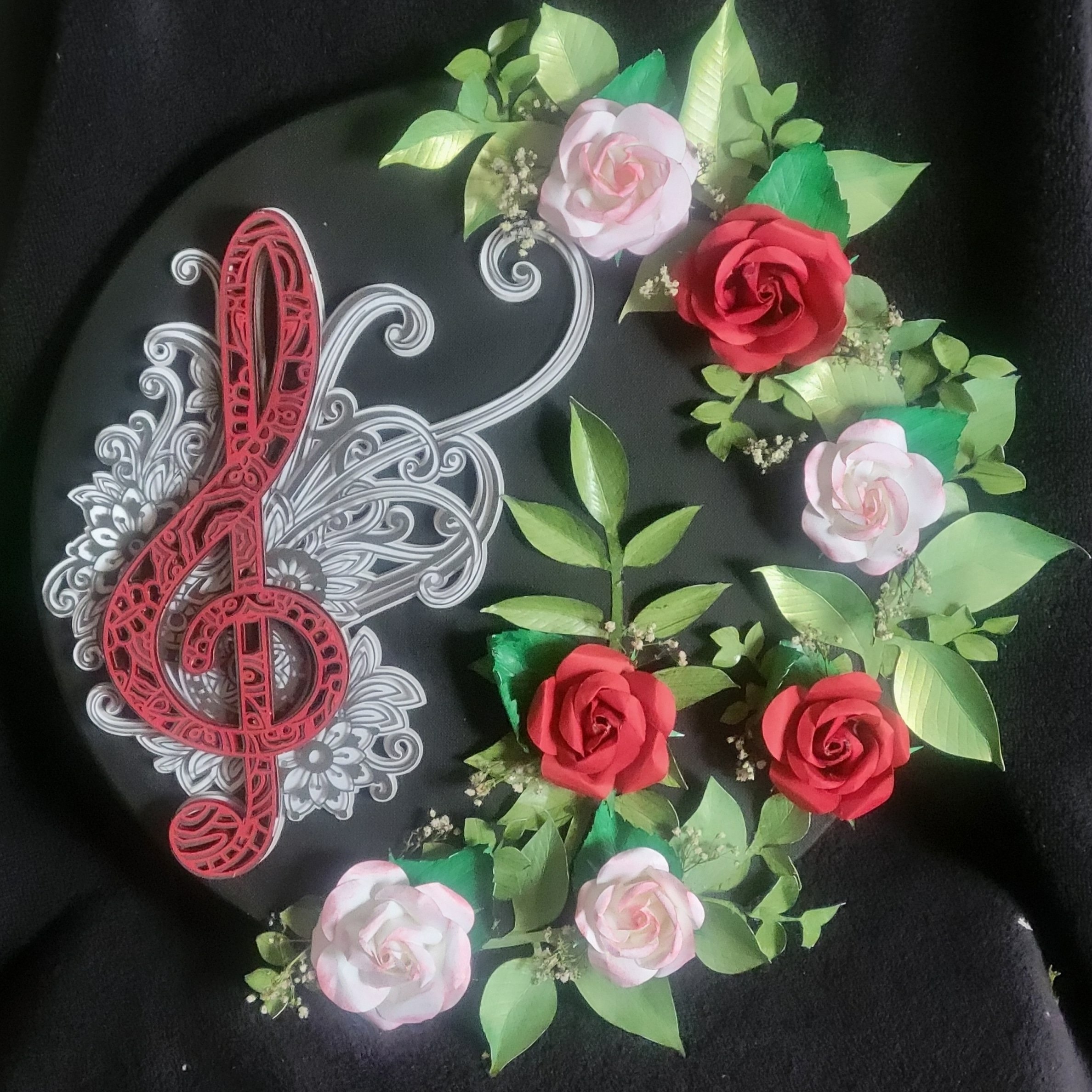 Treble Clef SVG, 3D Layered Floral Music Note SVG with Flowers and Swirls, 6 Layers, Digital Cutting File.