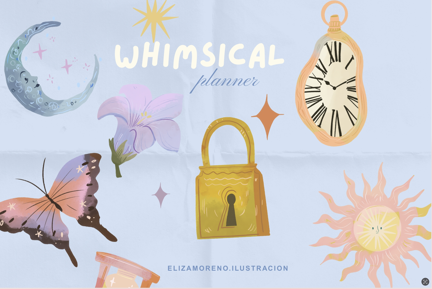 Each sticker is designed with unique details that blend the mystical and the creative: baroque suns, dreamy moons, melting clocks, and other elements that will transform every page into a little work of art.