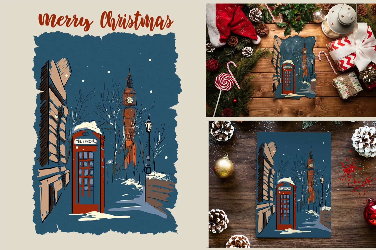 Sketch London Christmas Sublimation Merry Christmas Card New Year Sublimation Winter London