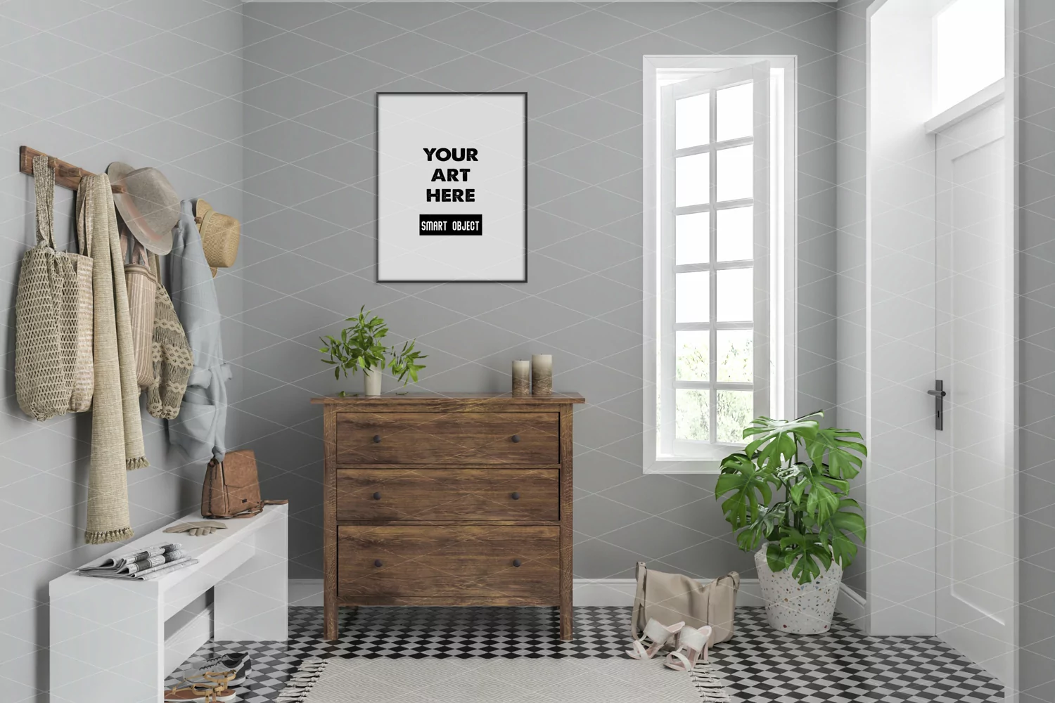 Mockup Mock Up Entry Room Hallway Frame Mockup Black Frame Entrance Mockup Psd Wall Art Mockup