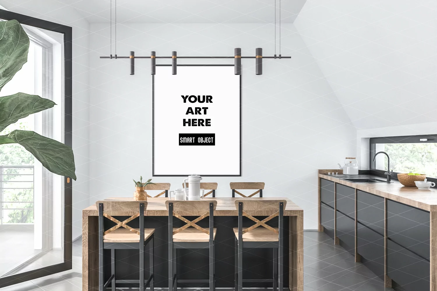 Kitchen Room Frame Mockup Black Frame Mockup Psd Interior Mockup Room Mockup Photoshop Psd Dining Room Vertical Frame