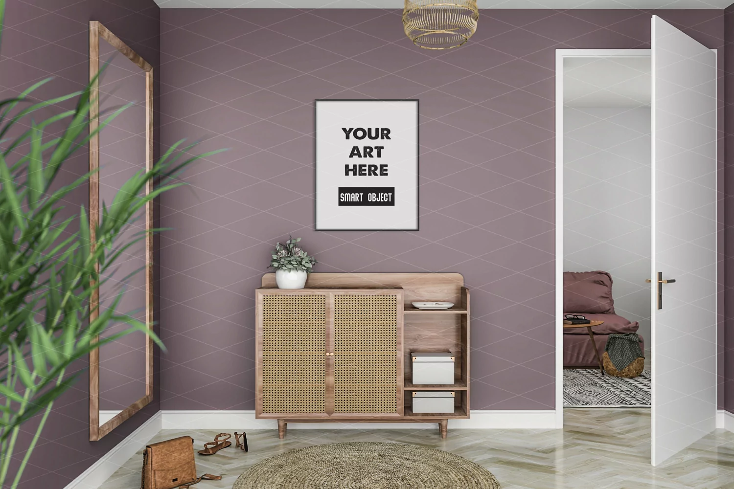Mockup Mock Up Entry Room Hallway Frame Mockup Black Frame Entrance Mockup Psd Wall Art Mockup
