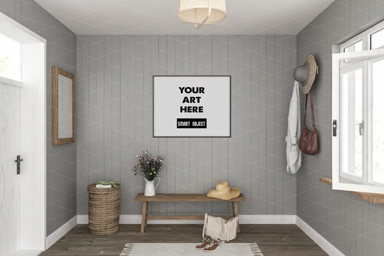 Mockup Mock Up Entry Room Hallway Frame Mockup Black Frame Entrance Mockup Psd Wall Art Mockup