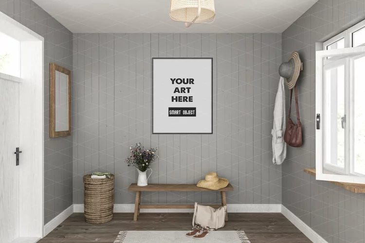 Mockup Mock Up Entry Room Hallway Frame Mockup Black Frame Entrance Mockup Psd Wall Art Mockup