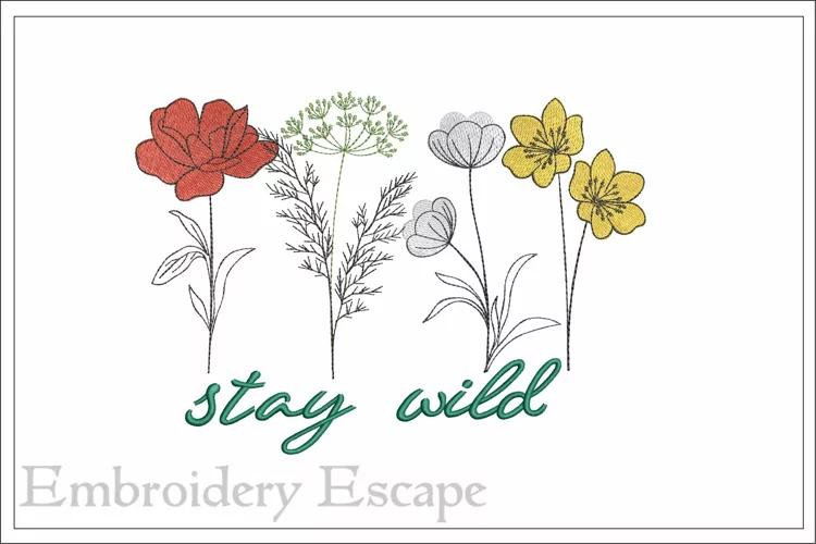 Wildflowers embroidery, stay wild embroidery design