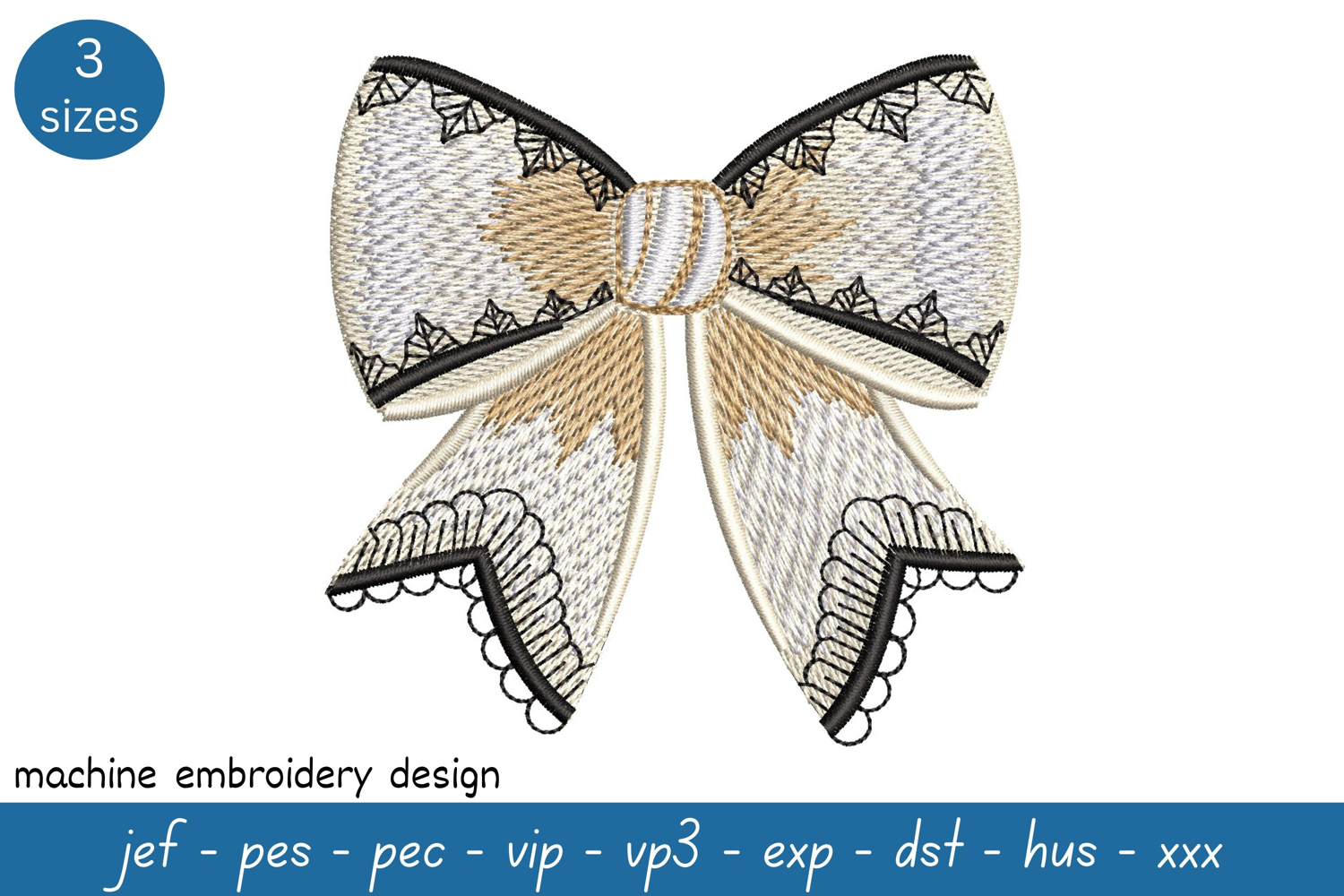 Start your next embroidery project with this beautiful embroidery pattern. This Bow Embroidery Design comes in 3 sizes.