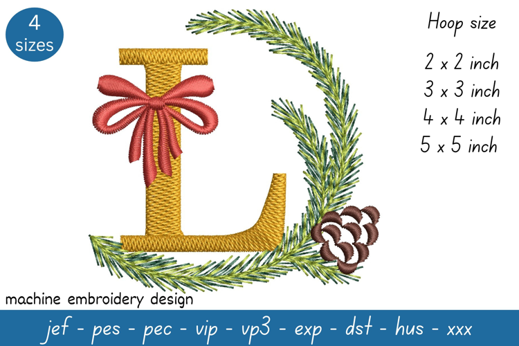 This Letter L Embroidery design comes in 4 sizes and is perfect for Christmas projects.