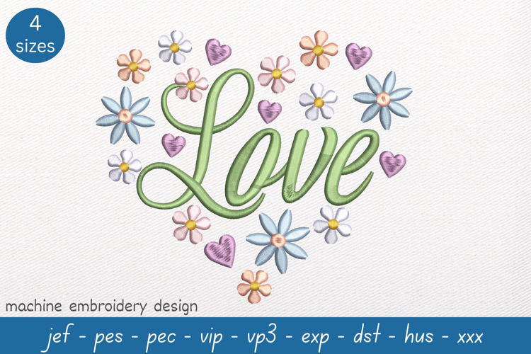 Floral Heart Embroidery Design comes in 4 sizes and is available for immediate download. This beautiful floral embroidery pattern is perfect for decorating cushions, bags, tea towels and more.