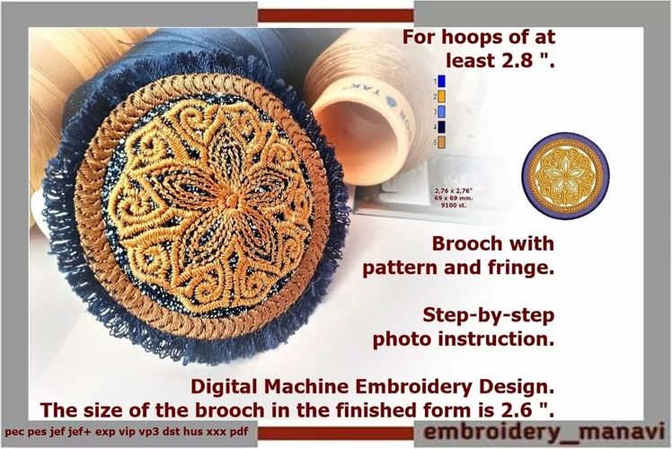 Embroidery File Embroidery Design In The Hoop In The Hoop Embroidery Design Digital Machine Embroidery Design Brooch With Fringe In The Hoop Brooch Embroidery Embroidery Brooch With Pattern In The Hoop Brooch With Fringe Ith Brooch