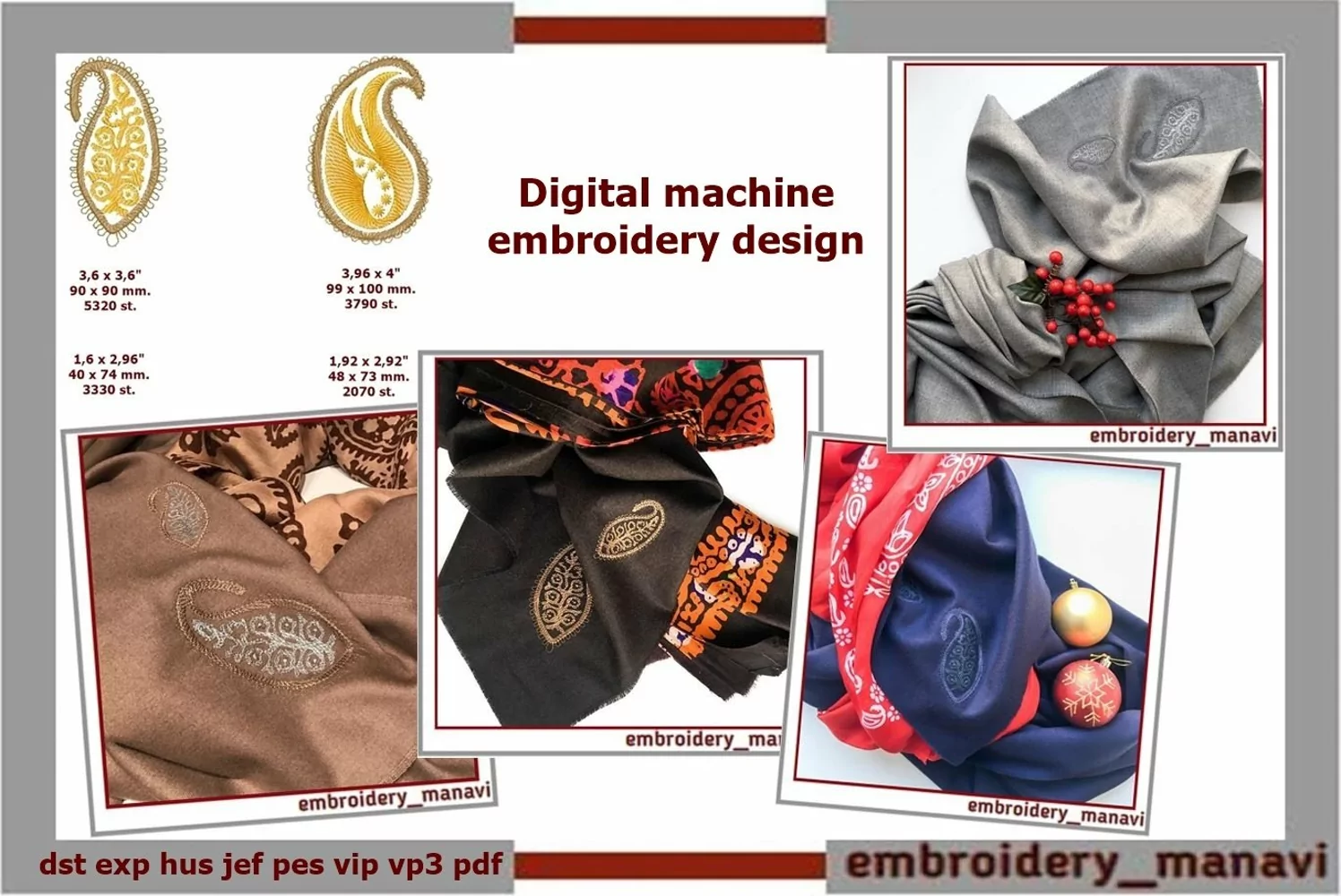👉 Digital machine embroidery design Light pattern paisley. 2 types of paisley in 2 sizes. Embroidery art. Light paisley pattern for decorating custom art scarves and other clothes, home decor. Small hoop. Instant download. In The Hoop embroidery project. ITH embroidery design.