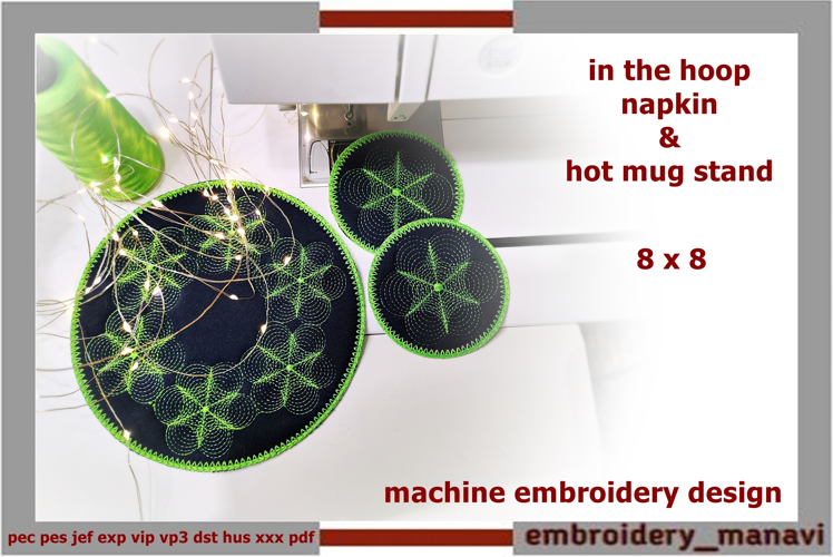 Instant Download Digital Embroidery Design Festive Mood In The Hoop Mug Rug Place Mat Embroidery New Home Embroidery Quilting Pattern Quilted Placemat Cozy Home Style Pec Pes Jef Embroidery