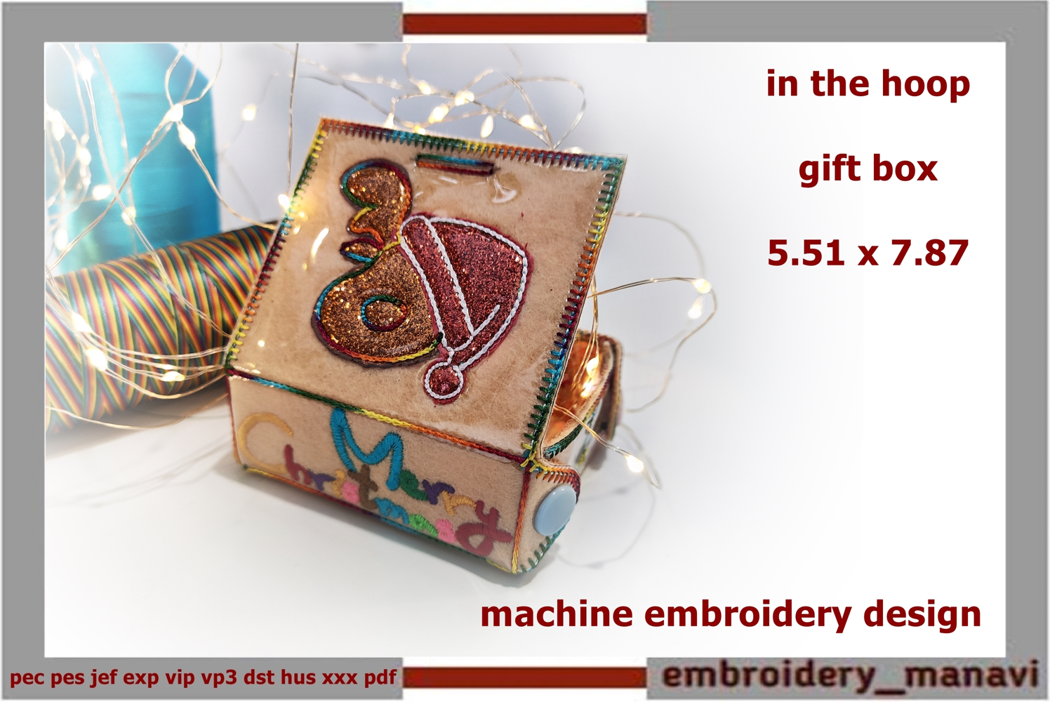 👉Festive ITH embroidery design for a complete Christmas gift box in one hooping! Features a Santa-hat reindeer and the cheerful “Merry Christmas” text in appliqué style.
