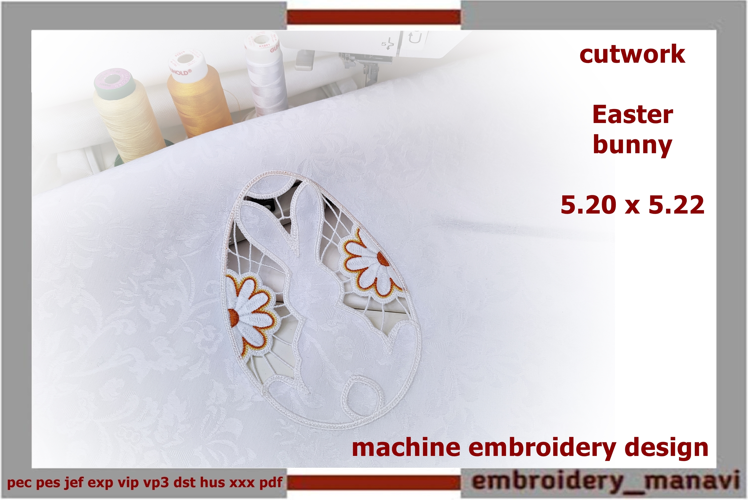 Cutwork Richelieu bunny embroidery design for Easter napkin