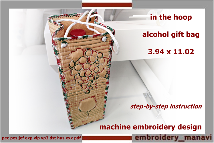 👉A professional in the hoop machine embroidery design for creating a structured alcohol bottle gift cover. The set contains six digital designs, a silicone window back piece, and a grape branch motif that can be turned into a decorative panel by omitting the final color. A perfect handmade gift idea created with love. Step by step instructions included. Instant download. Brand: Embroidery Manavi 05.
