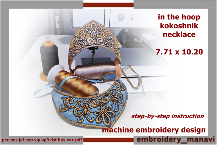 Digital Download Machine Embroidery Embroidery Pattern Sewing Project Diy Necklace Embroidery Manavi 05 Kokoshnik Embroidery Manual Digitizing Ith Accessory Convertible Jewelry