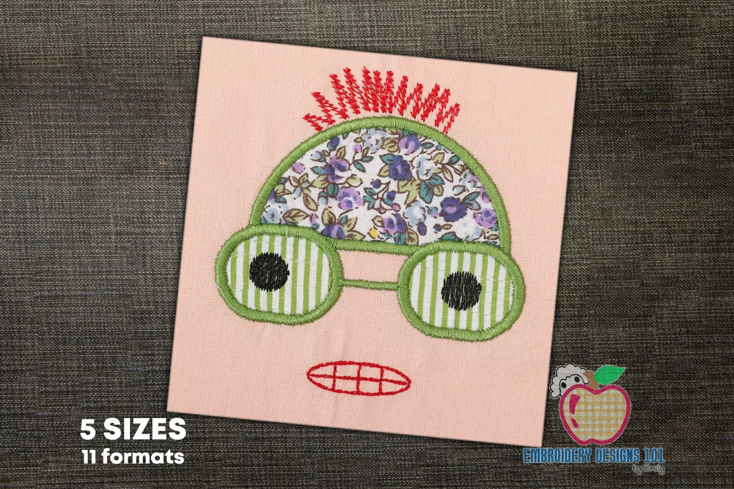 Machine Applique Design comes in 5 Sizes 4in to 8in suitable for hoop sizes 4x4, 5x7, 6x10, 8x8 and 8x12