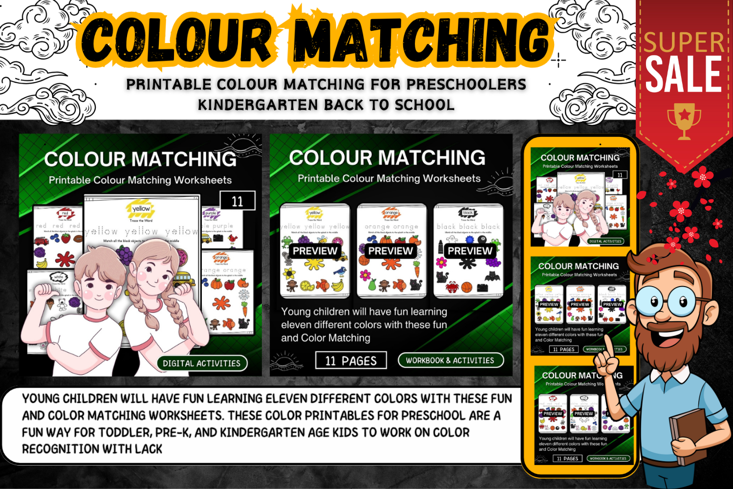 Young children will have fun learning eleven different colors with these fun and Color Matching Worksheets. These color printable for preschool are a fun way for toddler, pre-k, and kindergarten age kids to work on color recognition with lack, blue, pink, red, orange, purple, green, yellow, brown, white, and gray. Simply print pdf file with Color Matching Worksheets and you are ready to learn and play.