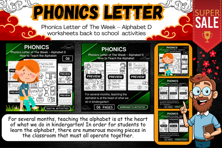 Similar Design Products to Phonics Letter of The Week Alphabet D worksheets activities