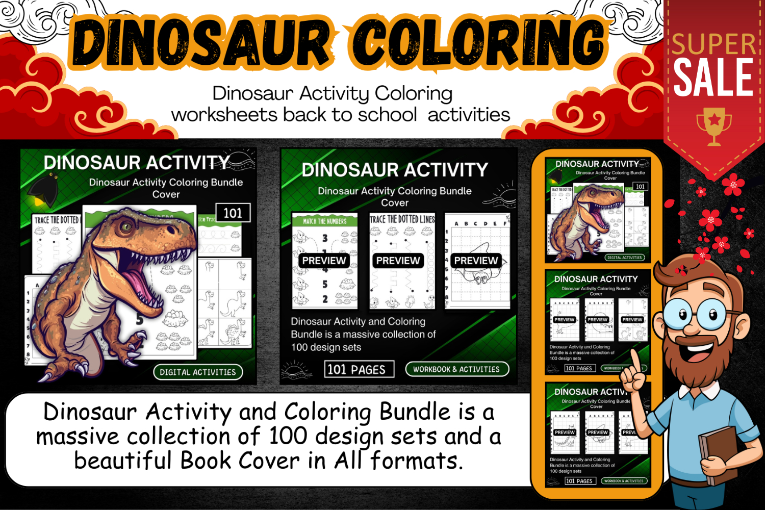 Dinosaur Activity and Coloring Bundle is a massive collection of 100 design sets and a beautiful Book Cover in All formats.