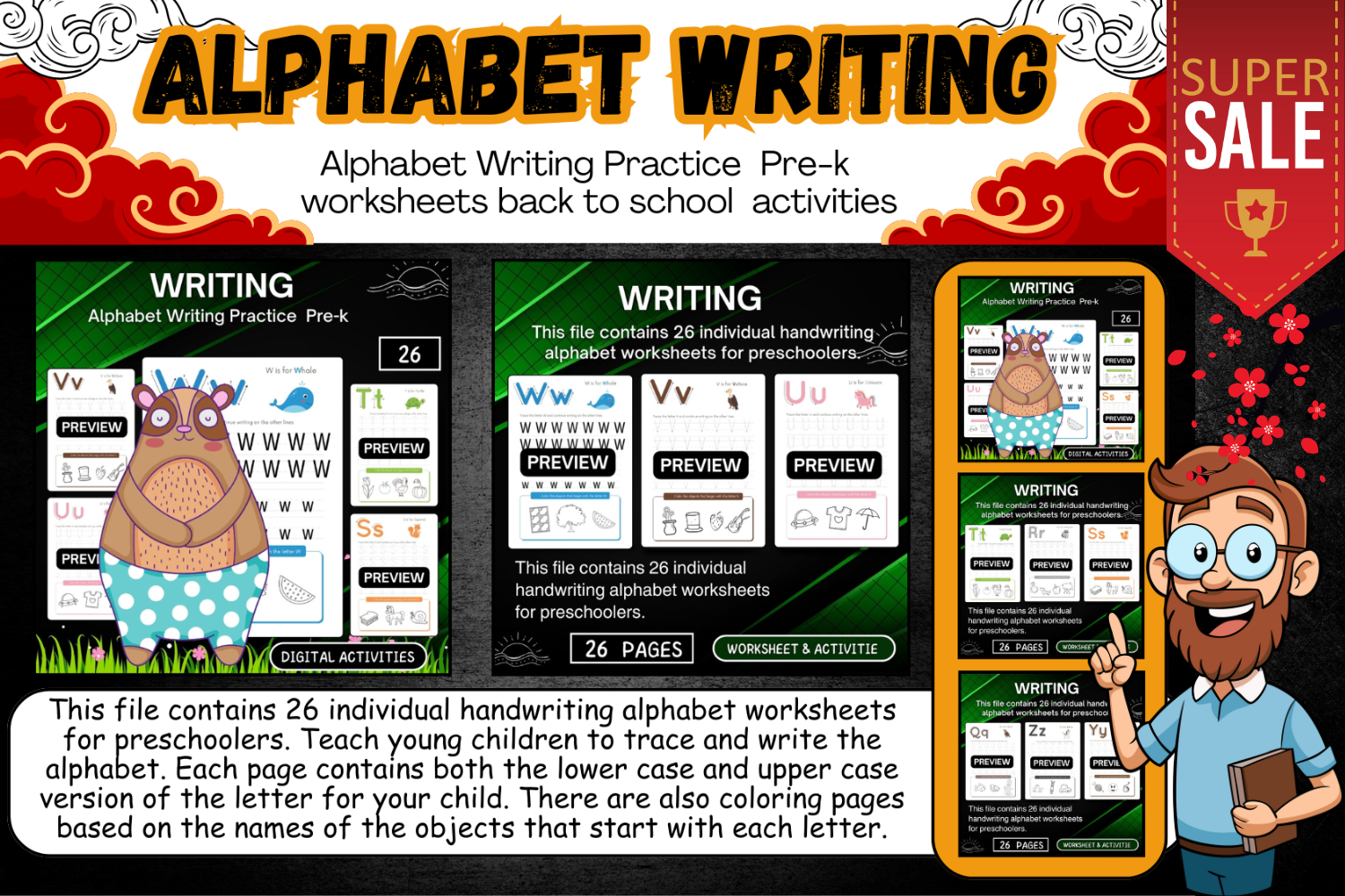 Similar Design Products to Alphabet Writing Practice worksheets for kids activities