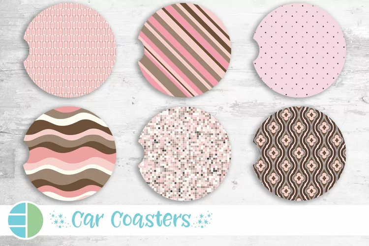Car Coaster - Sublimation Designs - Pink and Brown Patterns