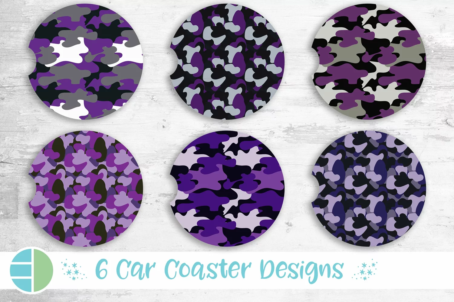 Purple Camo Pattern Car Coaster PNG Sublimation Bundle Camouflage