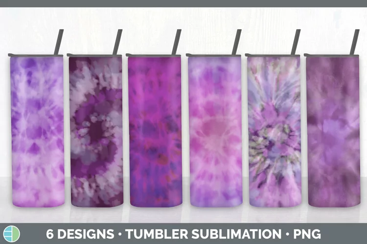 Purple Tie Dye Tumbler Sublimation Designs Bundle