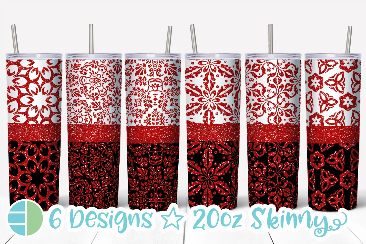 Fun and pretty damask Christmas patterns. Download 6 great vintage inspired Christmas tumblers! These elegant red glitter tumblers are great for holidays and year round.