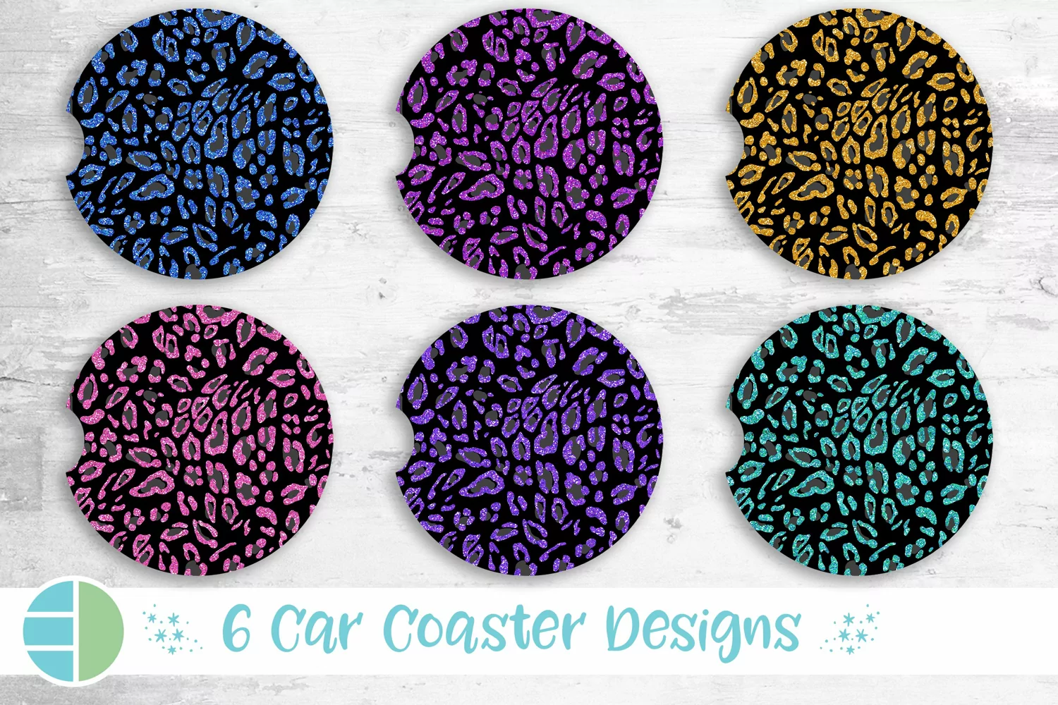 Leopard Print Car Coaster Design Sublimation Designs Bundle