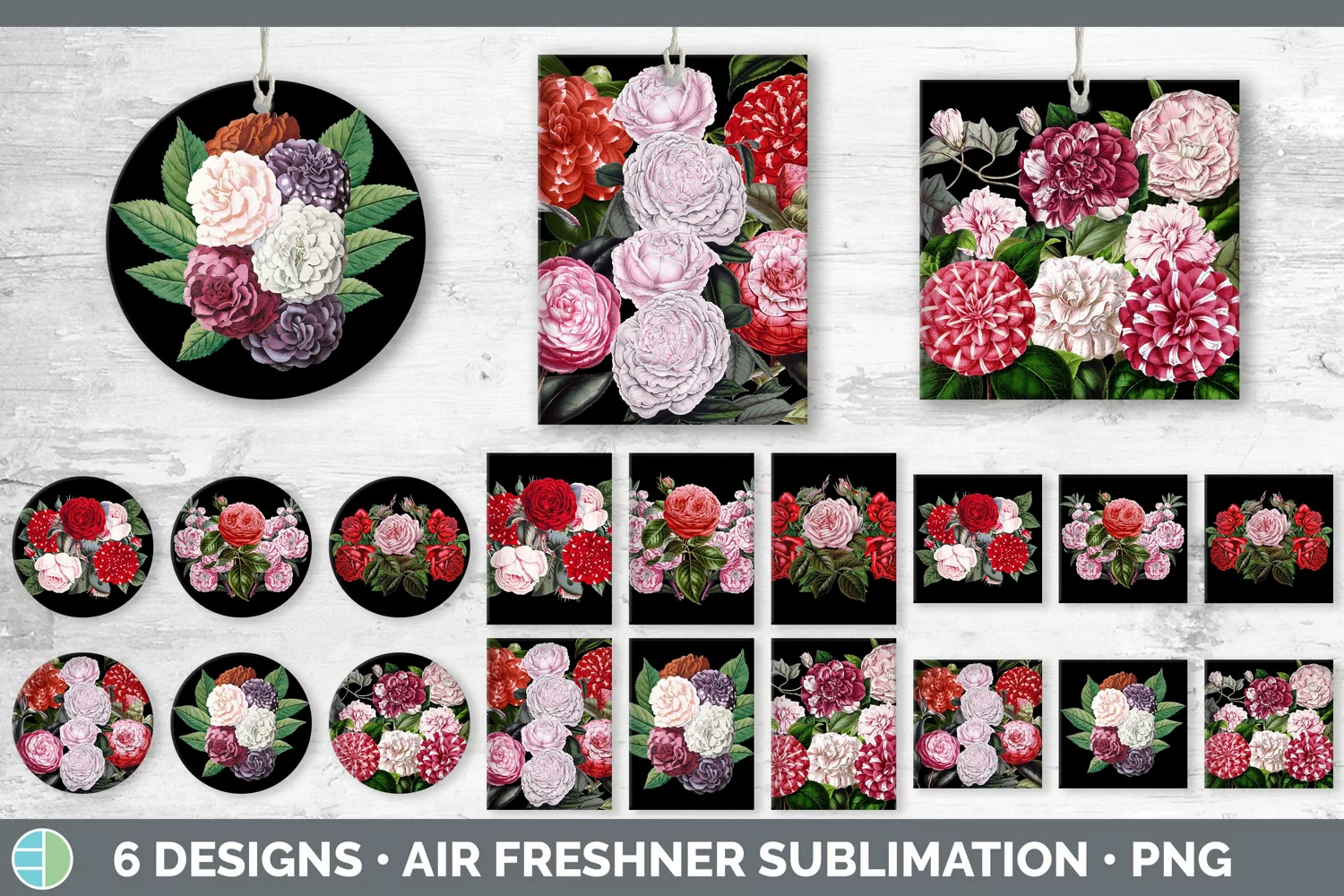 Bundle of six rose car air freshener sublimation designs