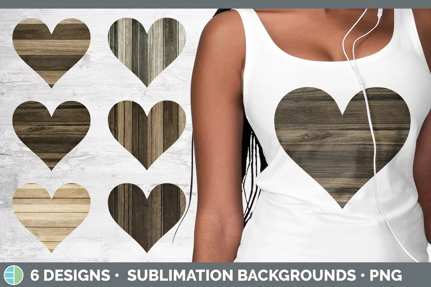 Wood Hearts Clipart | Sublimation Designs