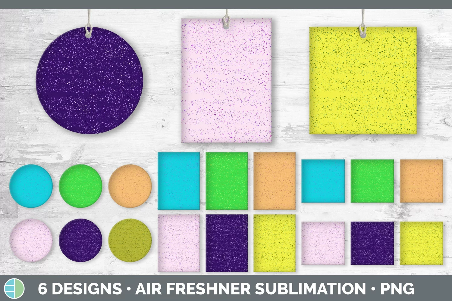 Bundle of six Spatter car air freshener sublimation designs.