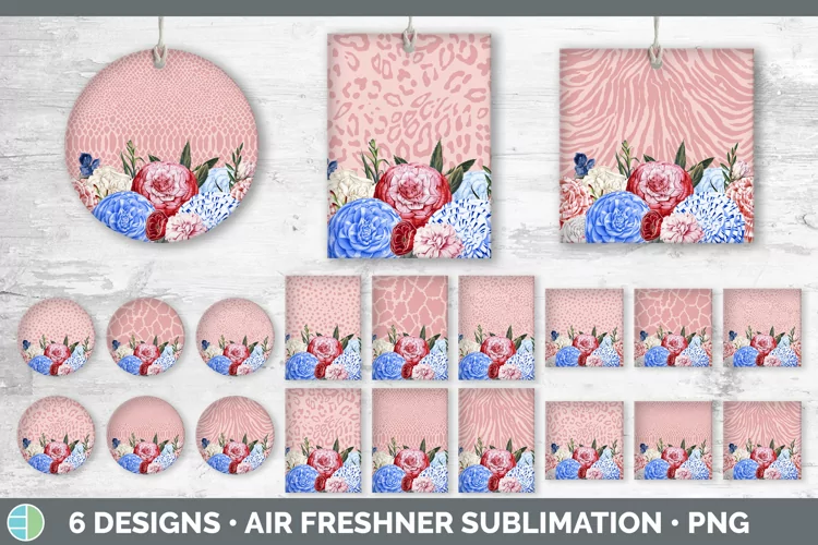 Patriotic Flowers Air Freshener | Sublimation Designs Bundle
