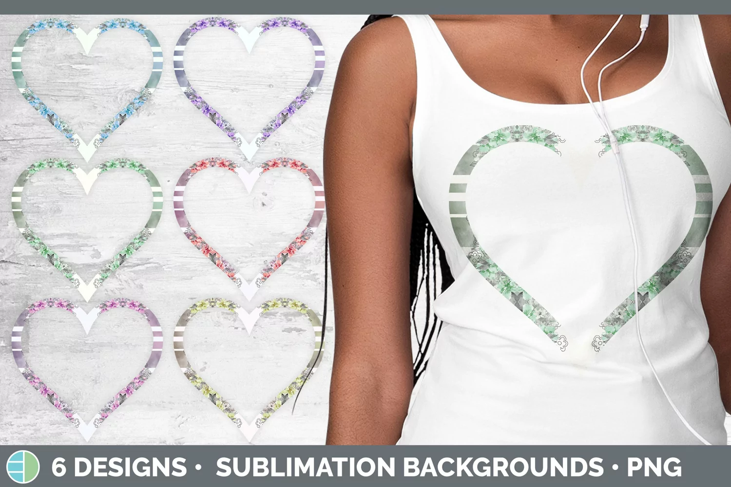 Heart Sublimation Background | Pastel Flowers Bundle