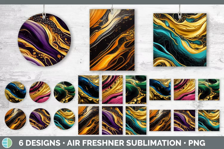 Bundle of six Fluid Art car air freshener sublimation designs.