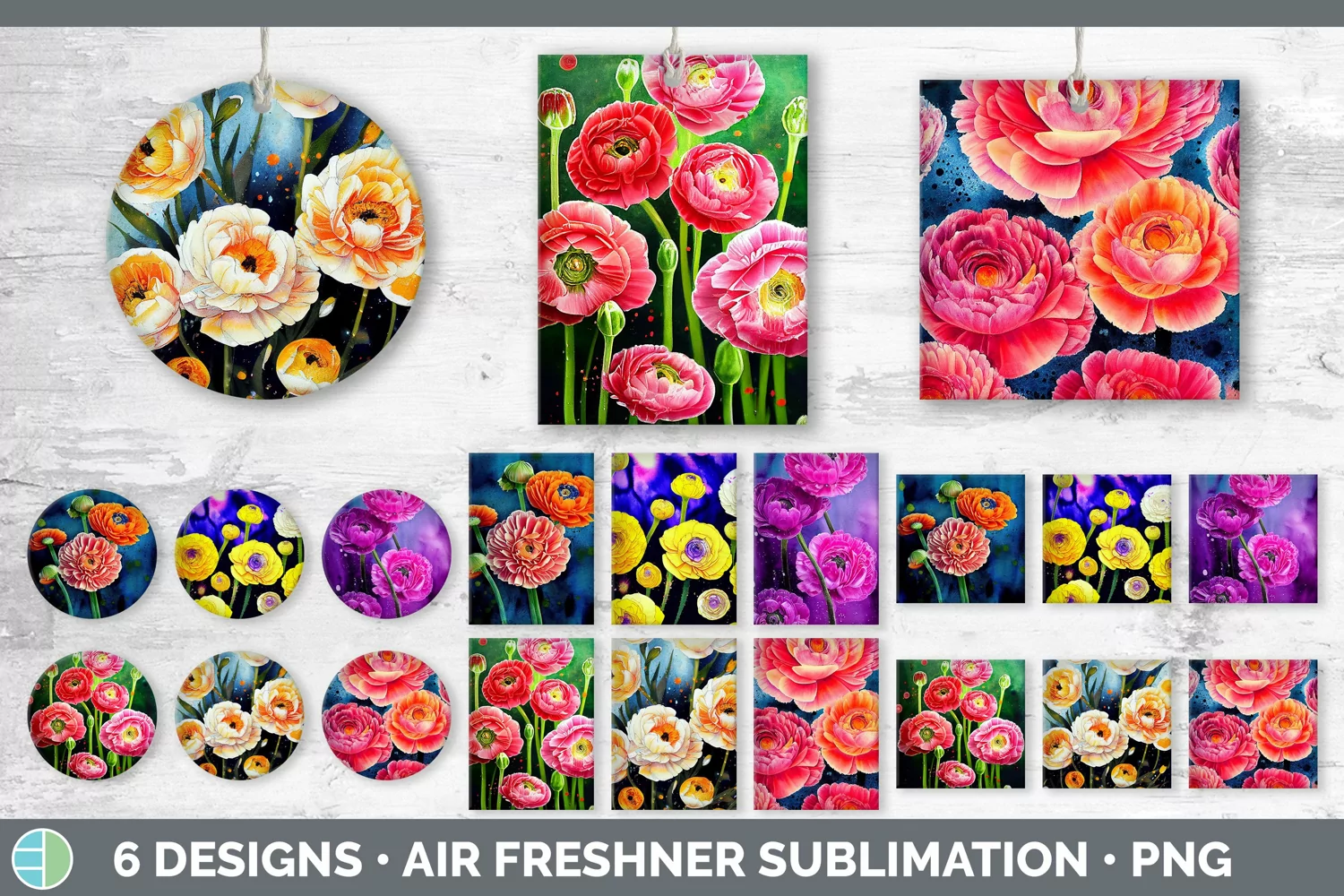 Ranunculus Flowers Air Freshener | Sublimation Designs Bundle