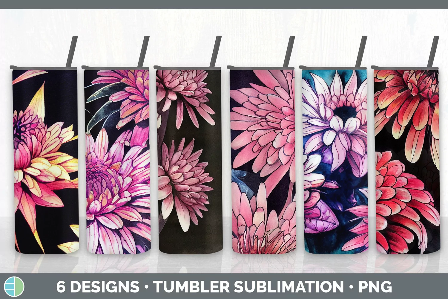 Bundle of six Chrysanthemums sublimation tumbler designs.