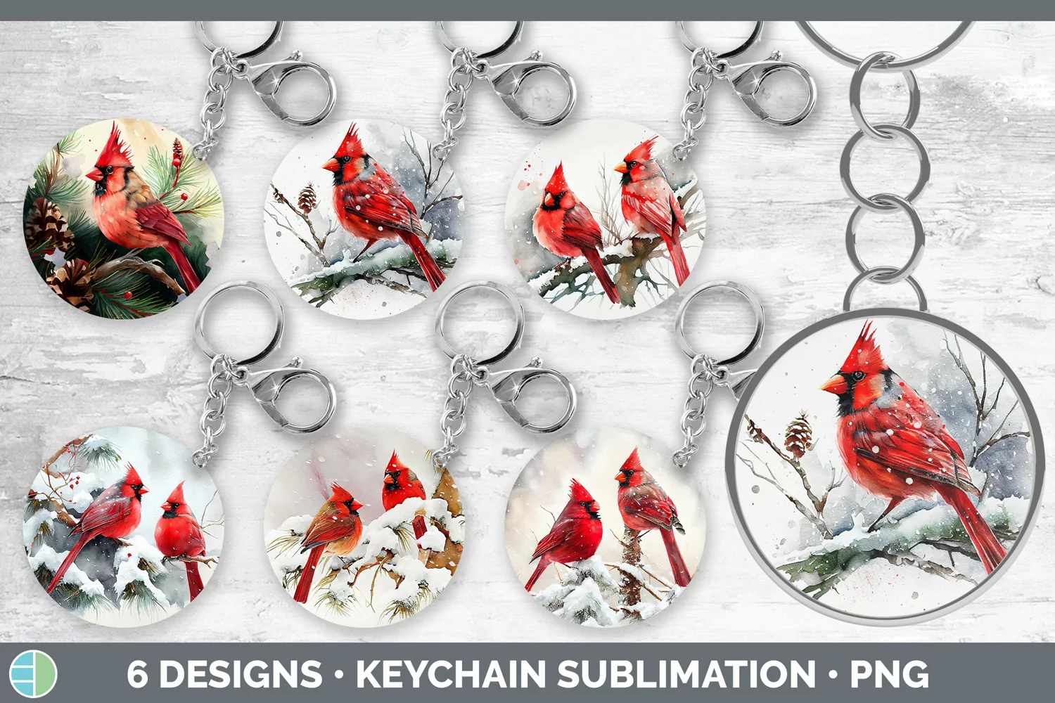Bundle of six Christmas Cardinal keychain sublimation designs.