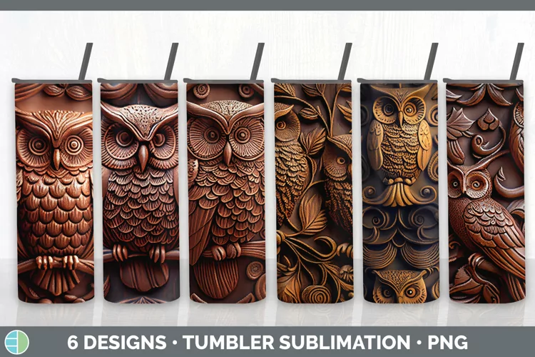 Bundle of six Tooled Leather Owl sublimation tumbler designs.