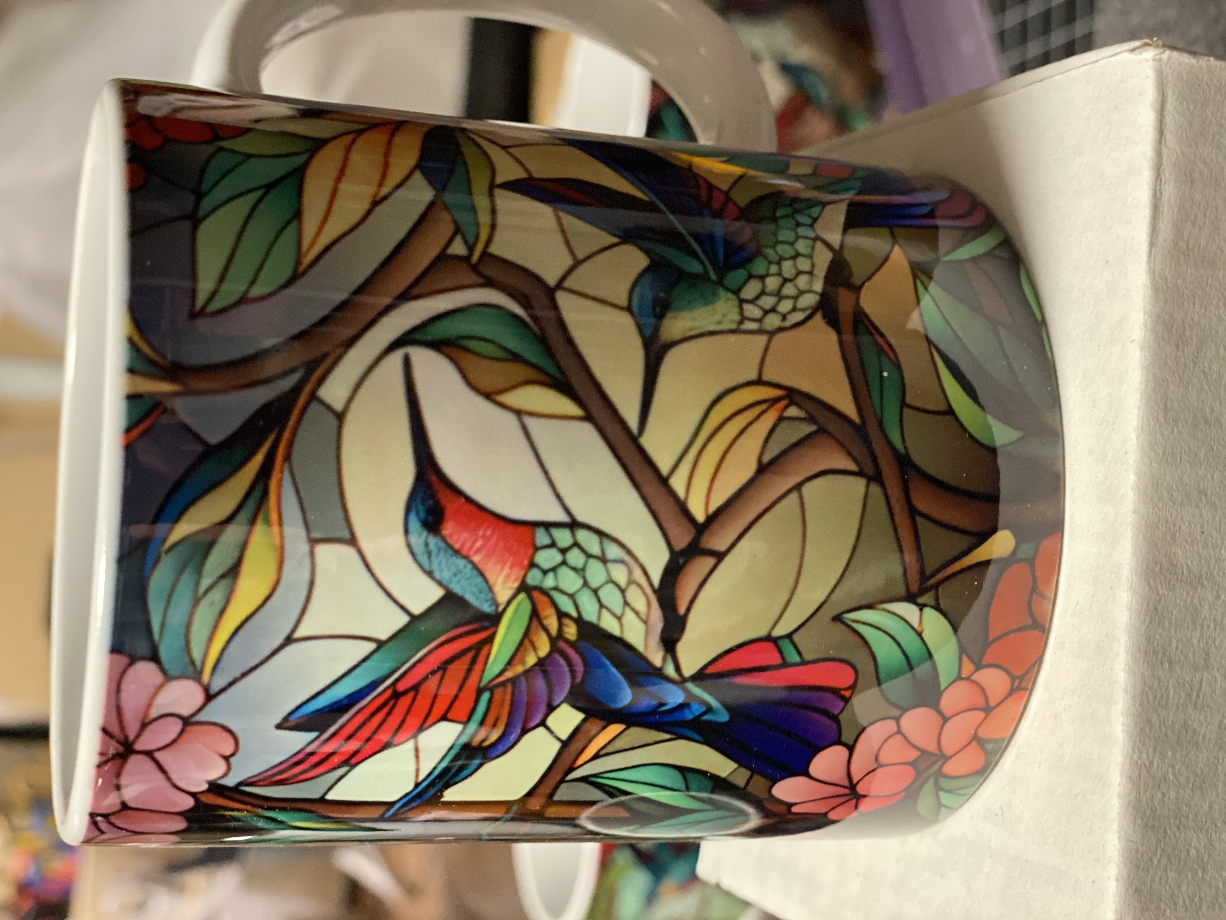 Stained Glass Hummingbird Mug Sublimation | Coffee Cup Backg