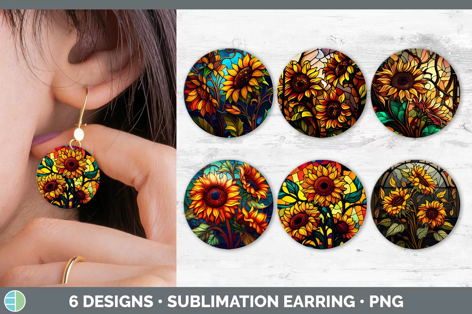 Similar Design Products to Stained Glass Sunflower Flowers Round Earrings | Sublimation